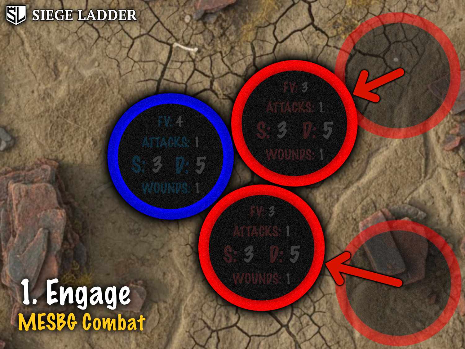 Step-by-step guide to show how combat works in MESBG, with the relevant stats being highlighted at each stage.