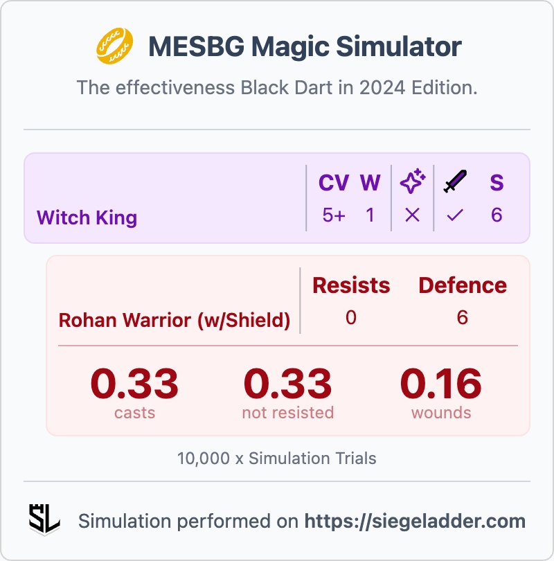 When the new 2024 edition came out for the Middle Earth Strategy Battle Game, it was generally accepted that Magic took a hit. We saw a rise in "Resistant to Magic" rules, and spells like Black Dart (which we'll dive into later) took a big hit too. So is magic still effective, and what is the maths that drives the supernatural in MESBG?